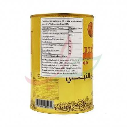 Ingrédients : huile de soja, huile de palme, E160a (bêta-carotène), arôme identique au beurre, antioxydant E320, E321, vitamine A & D3