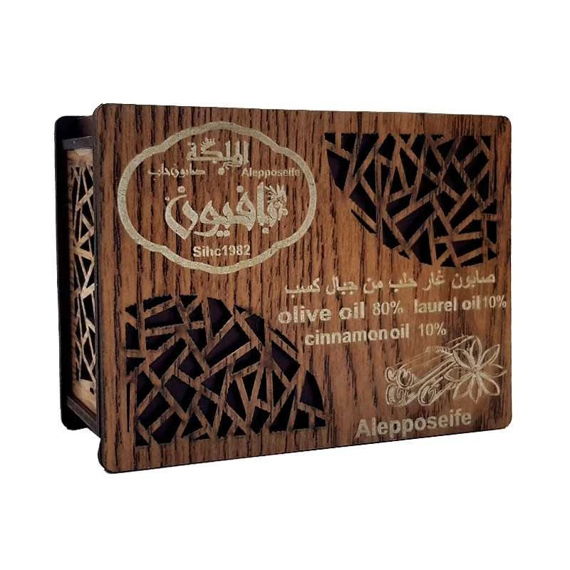 De couleur brun doré à l’extérieur, et émeraude à l’intérieur, le savon d’Alep est le joyau des joyaux en Syrie mais aussi dans le monde entier. Son odeur ensoleillée et légèrement épicée due à la présence d’huile de Baie de Laurier apportera à votre peau tous les bienfaits et la protection dont elle a besoin.